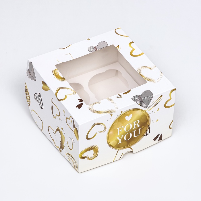 Коробка для 4 капкейков с окном, For you, 16×16×10 см