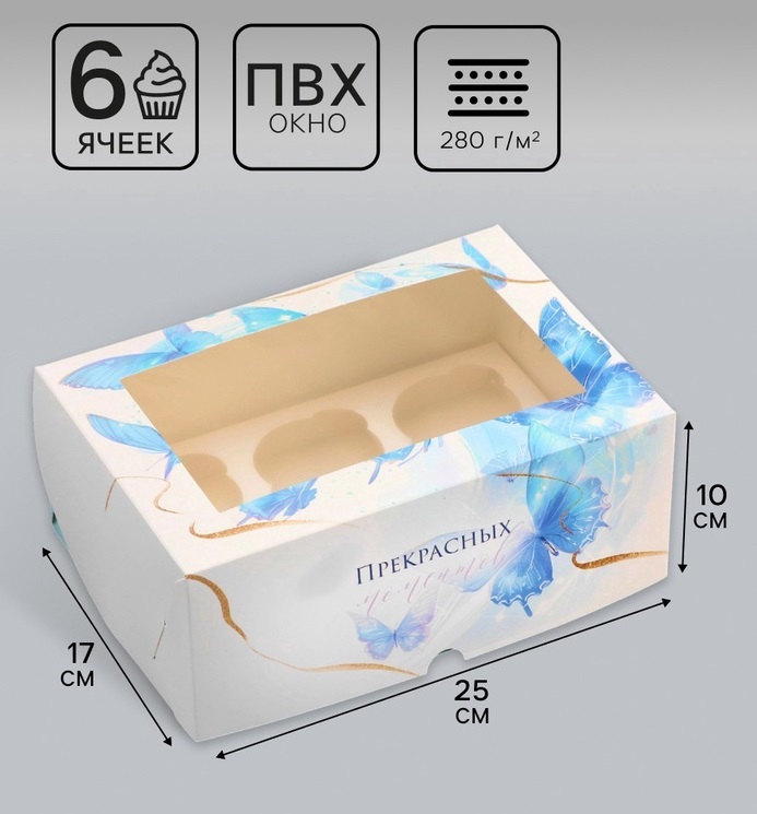 Коробка для 6 капкейков с окном, Прекрасных моментов, 25×17×10 см за 75 ₽ - купить в Москве оптом и в розницу.