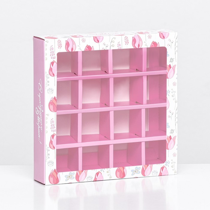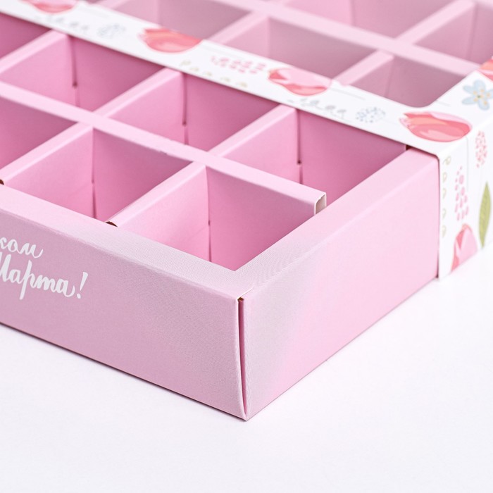 Коробка для 16 конфет, « 8 марта» 17.7×17.7×3.8 см за 105 ₽ - купить в Москве оптом и в розницу.