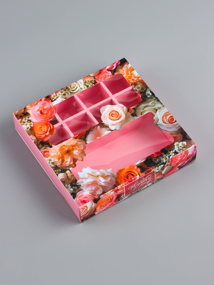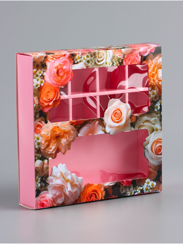 Коробка для 8 конфет + шоколад, с окном «Поздравляю», 17.7×17.8×3.8 см за 85 ₽ - купить в Москве оптом и в розницу.