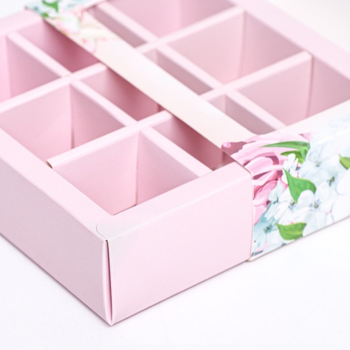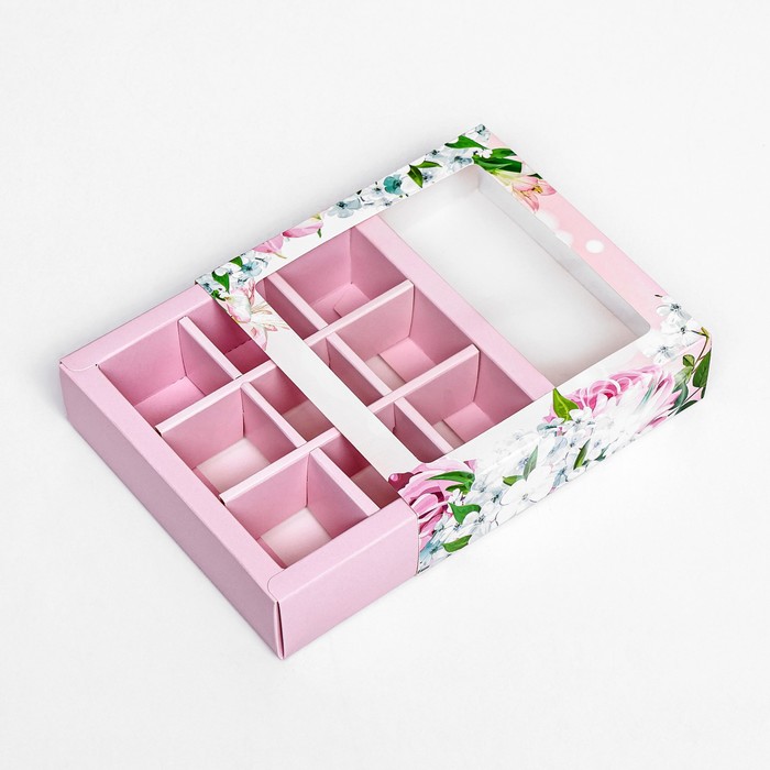 Коробка для 9 конфет, «Цветы» 13.8×13.8×3.8 за 85 ₽ - купить в Москве оптом и в розницу.