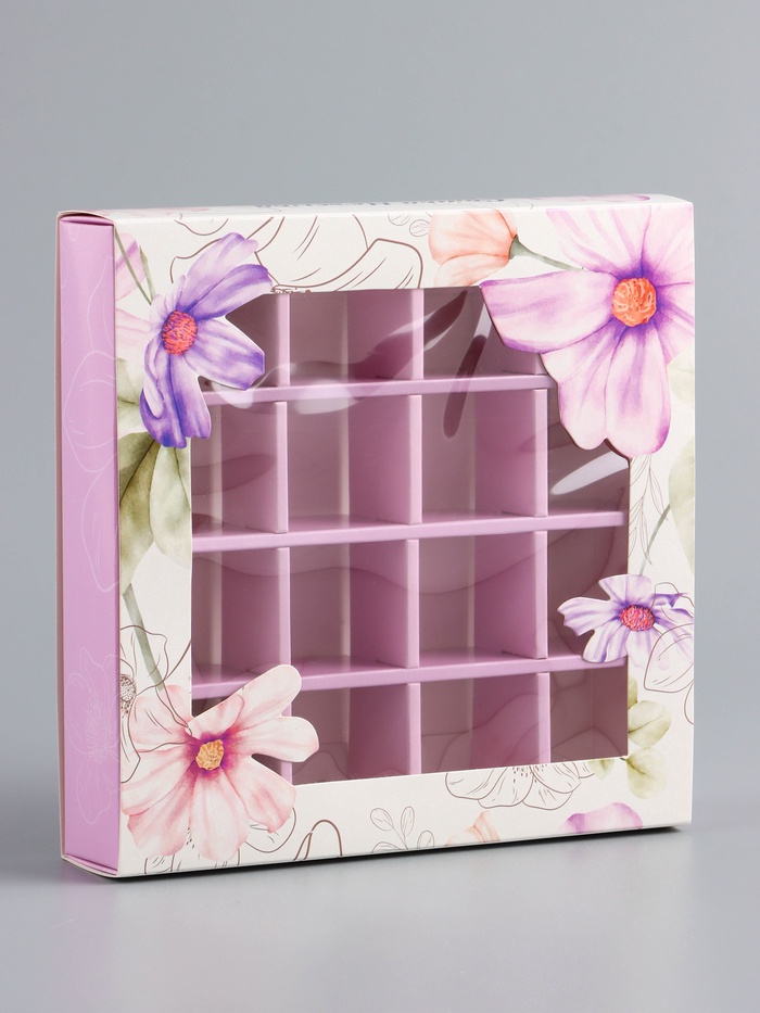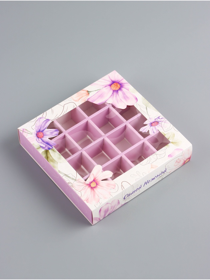 Коробка для конфет 16 шт. «Самой нежной», 17.7×17.7×3.8 см за 95 ₽ - купить в Москве оптом и в розницу.