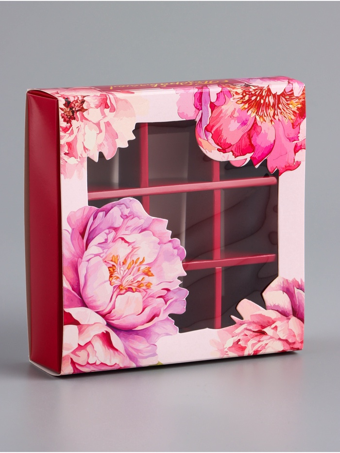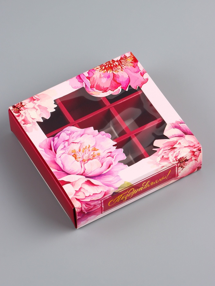 Коробка для конфет с обечайкой 9 шт. «Поздравляю», 13.7×13.7×3.5 см за 100 ₽ - купить в Москве оптом и в розницу.