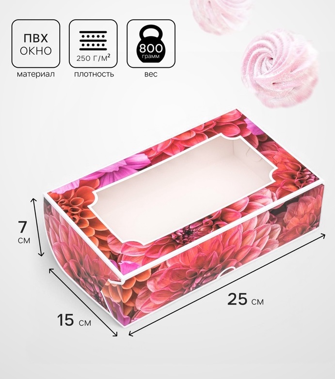 Коробка для зефира Георгины, 25×15×7 см за 75 ₽ - купить в Москве оптом и в розницу.