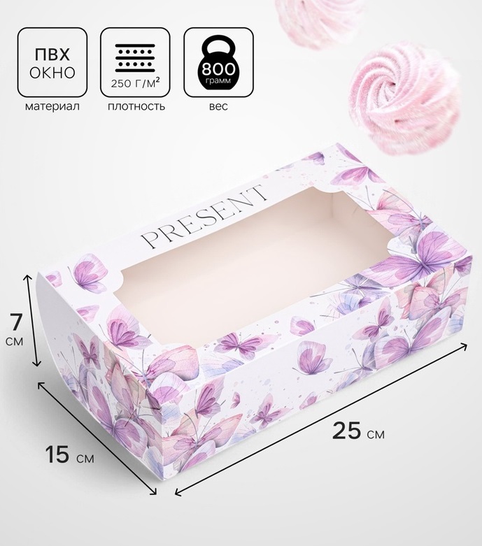 Коробка для зефира Пастельные бабочки, 25×15×7 см