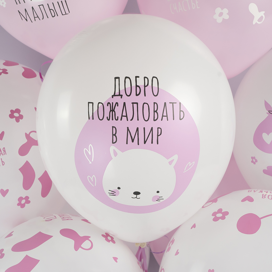 Воздушный шар латексный Ура, девочка! белый/розовый, пастель за 25 ₽ - купить в СВАО