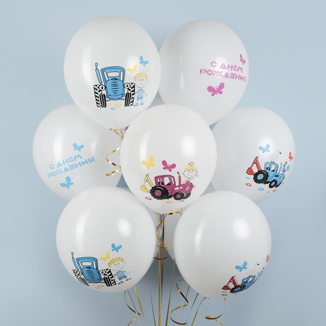 Воздушный шар латексный Синий трактор, белый, пастель за 30 ₽ - купить в СВАО