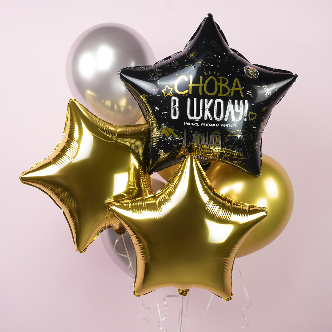 Воздушный шар фольгированный Звезда, Снова в школу!, черный за 500 ₽ - купить в СВАО