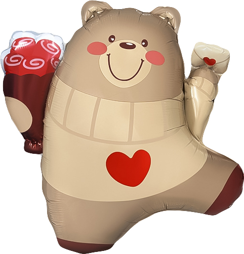 Воздушный шар фольгированный Сердце Фигура, Мишка с валентинкой
