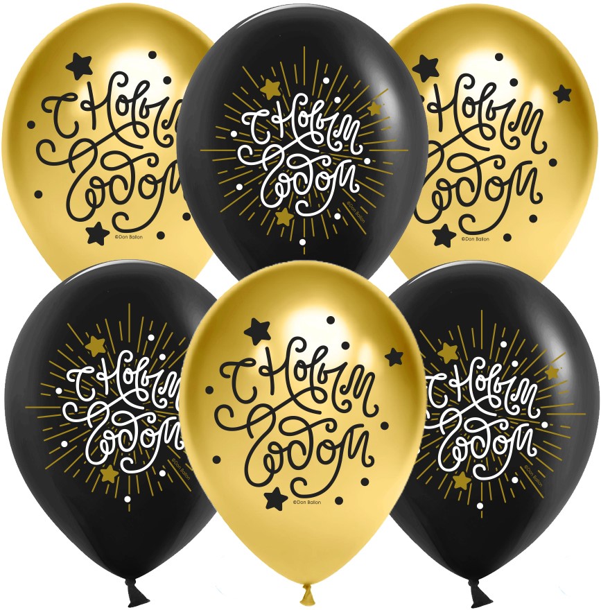 Шар латексный С Новый Годом!, черный/золото, хром за 25 ₽ - купить в СВАО