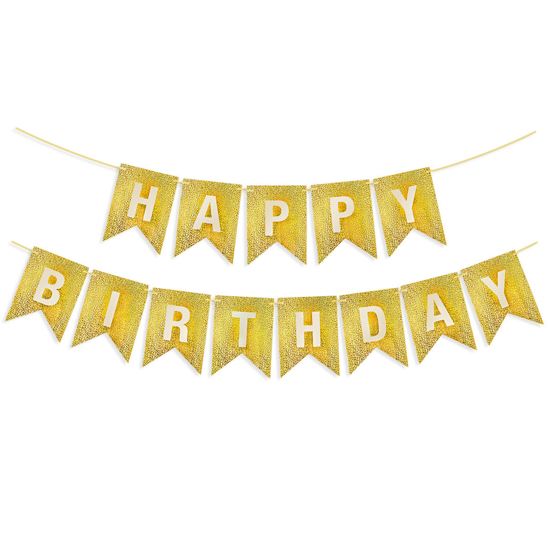 Гирлянда Флажки Happy Birthday, золото, голография, 350см, 17*12см