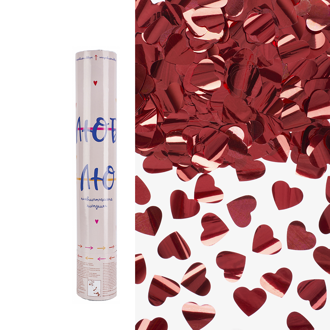 Хлопушка 30см Люблю, фольга, сердце, красный, металлик за 285 ₽ - купить в СВАО
