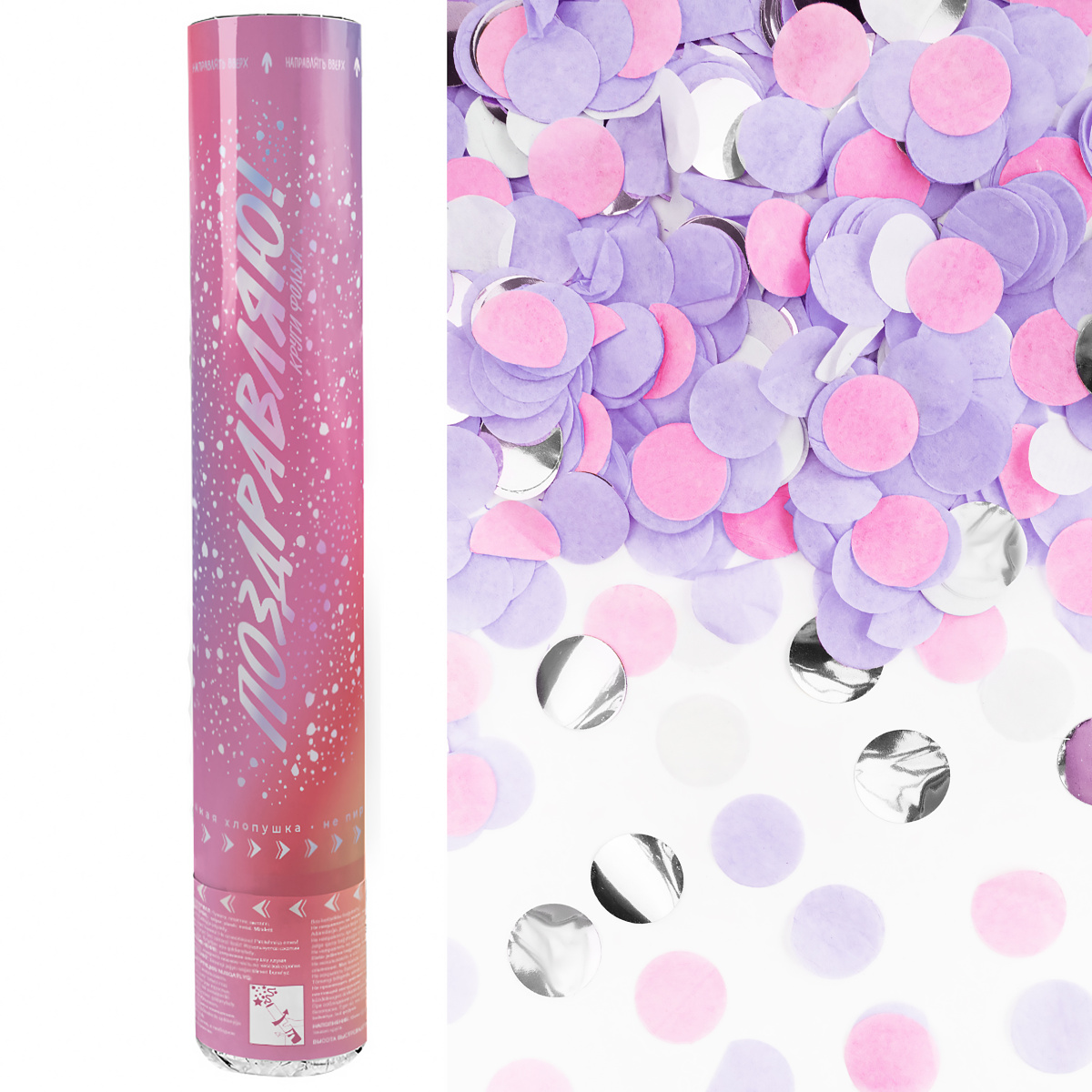 Хлопушка 30см, Поздравляю!, круги фольга и тишью, ассорти металлик за 255 ₽ - купить в СВАО