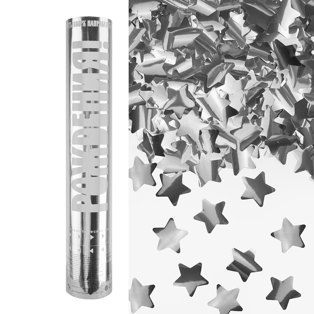 Хлопушка 30см, С Днем Рождения, звезды фольга серебро, металлик за 295 ₽ - купить в СВАО