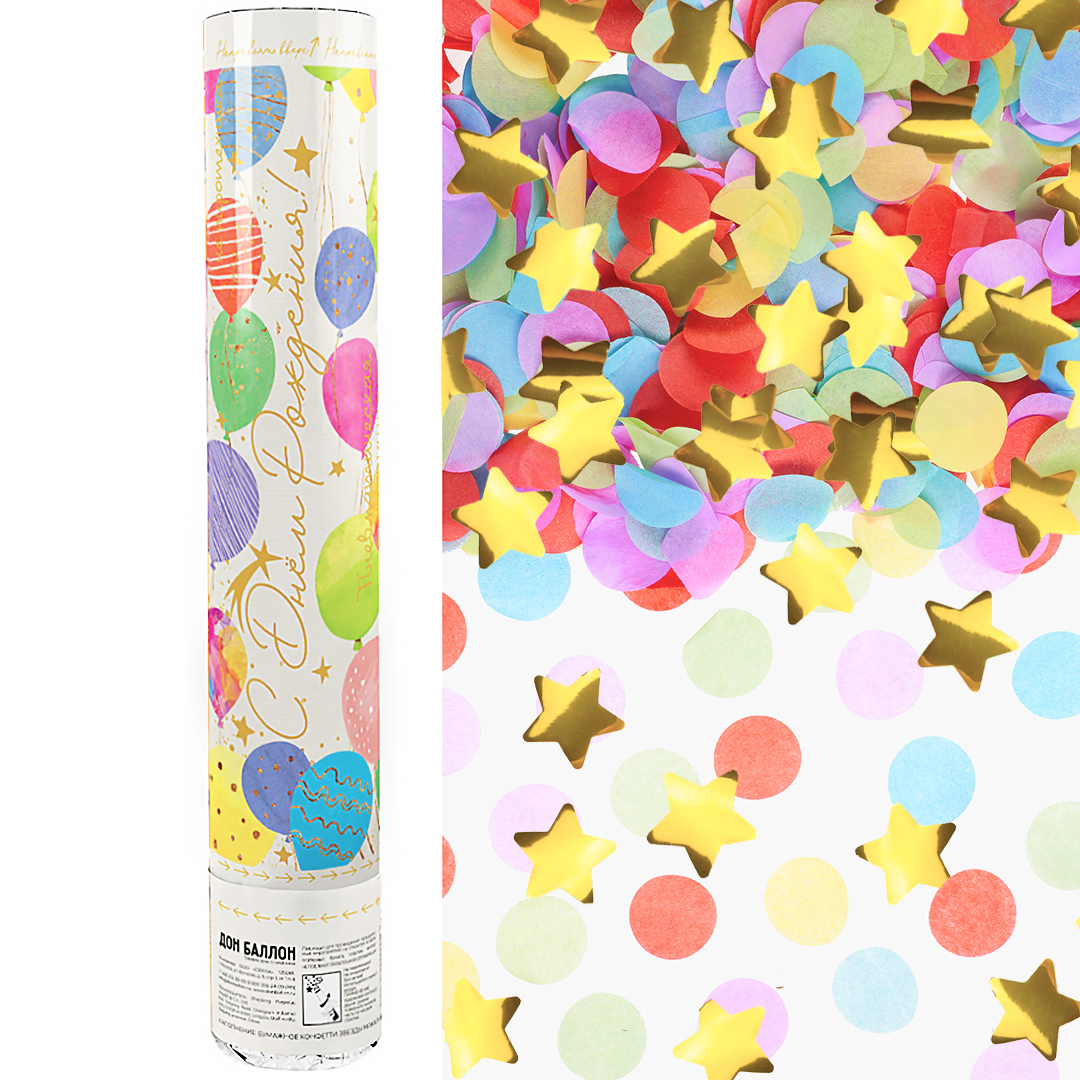 Хлопушка 30см, Воздушные шары, звезды фольга и круги тишью, золото, металлик за 295 ₽ - купить в СВАО
